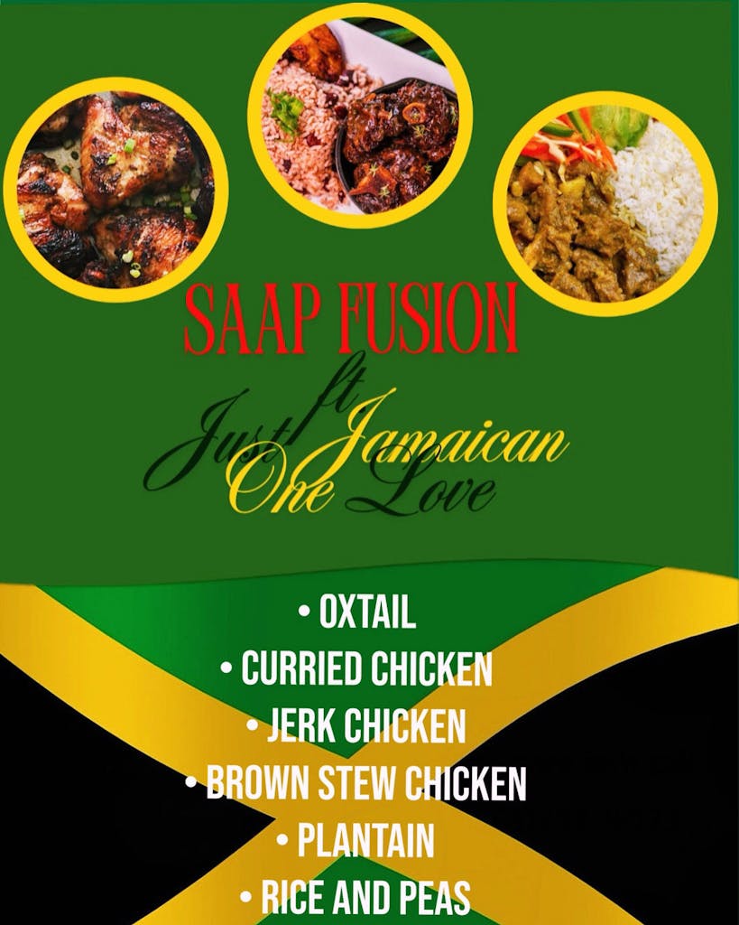 One Love, our new culinary Ad’Venture. Big up to our very own Chef Renee as she brings homestyle Jamaican food to Saap Fusion. Available Mondays and Tuesdays. Come feel the love and try a genuine taste of Jamaica. ‘Bless up’🙏🏻